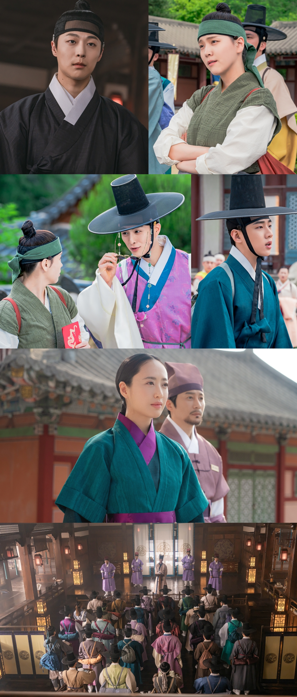 먼저 공개된 사진 속 이은호(배인혁 분)의 매서운 눈초리가 눈길을 끈다. 용천루의 주인, 태상방주의 비밀을 밝히고자 왕의 아들이라는 신분을 숨기고 교육사환으로 입사한 이은호. 궁궐 밖에서 신분을 숨기고 사는 건 처음인 그에게 용천루 첫 날 풍경이 어떻게 비쳤을지 궁금해진다.