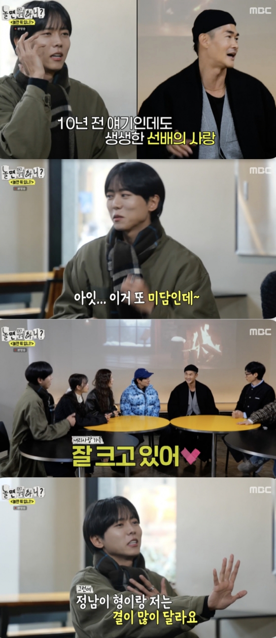 이어 그는 "그러면 (배정남) 형님이 같은 가게에 '느그 뭐하노' 이러면서 온다. 그러고서는 '샴페인 하나 주소'라고 하고 샴페인을 하사한다. 10년 전 일인데도 기억한다"라며 배정남의 미담을 전했다.