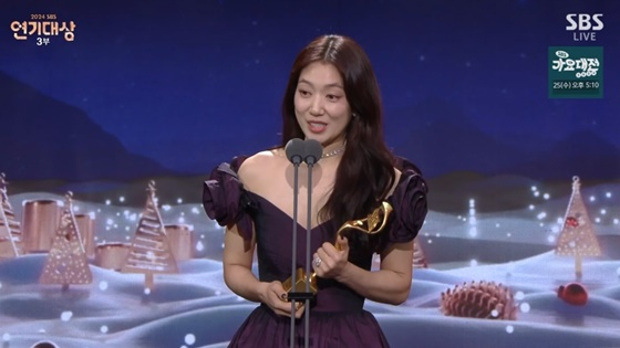 배우 장나라가 '2024 SBS 연기대상' 대상 수상의 영예를 안았다.