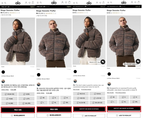 이날 진이 입은 미화 398달러(한화 67만원 상당)의 알로(ALO)의 재킷(스테이지 스웨터 푸퍼)이 공식 사이트에서 품절되며 최고 글로벌 슈퍼스타 진의 독보적인 인기를 증명했다. 남성용과 여성용의 전체 모든 사이트 품절로 현재 온라인 품절 표시와 함께 재입고 알림 버튼이 표시돼있다.