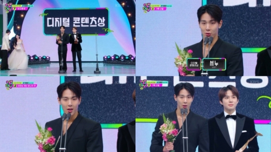 셔누는 지난 21일 서울 영등포구 여의도동 KBS 신관 공개홀에서 개최된 '2024 KBS 연예대상'(이하 '연예대상')에 참석해 KBS Kpop 채널의 웹예능 '노포기'를 통해 디지털 콘텐츠상을 수상했다.