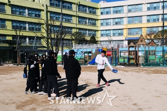 이날 오전 10시가 되자 학동초 선수들이 하나둘씩 운동장으로 나오기 시작했다. 이들에게 이들 LG 선수 4명은 우상이자 영웅이었다. 꿈에서나 마주할 법한 선수들이 실제로 눈앞에 서 있다니…. 프로 선수들 한 마디, 한 마디에 학동초 선수들의 심장이 쿵쾅거리기 시작했다.