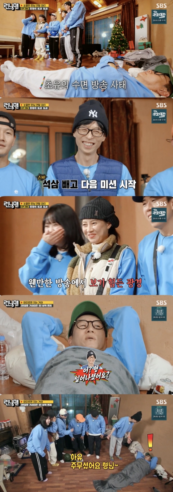 '런닝맨' 지석진이 방송 중 잠에 들었다.