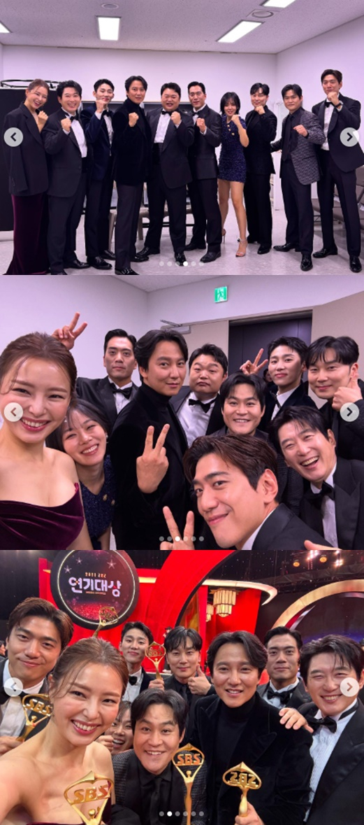 공개 된 사진에는 지난 21일 열린 SBS 연기대상 시상식에 참석한 이하늬 김남길 등 '열혈사제2'에 출연 중인 배우들이 시상식에 참석한 모습이 담겨 있다.
