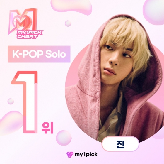 방탄소년단(BTS) 진이 마이원픽(MY1PICK)에서 최고의 원픽 스타로 선정, 실물 트로피의 주인공이 됐다.