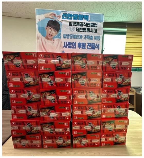 임영웅의 팬클럽 영웅시대 제천은 12월 23일 제천시장애인부모연대를 찾아 50만 원 상당의 라면을 기부했다.