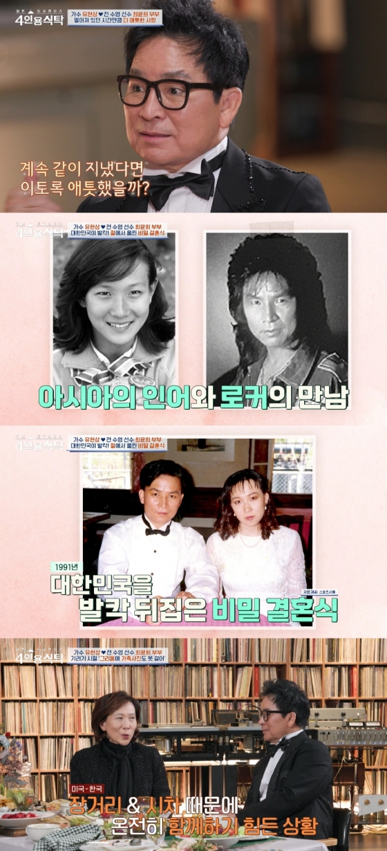 23일 오후 채널A '절친 토큐멘터리 - 4인용식탁'에서는 가수 유현상과 전 수영선수 최윤희 부부 편이 방송됐다.