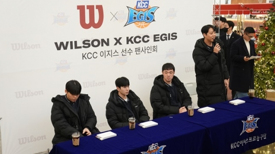 KCC는 지난 23일 저녁 부산 롯데백화점 서면점 9층 광장에서 '윌슨과 함께하는 KCC이지스 팬사인회'를 진행했다.