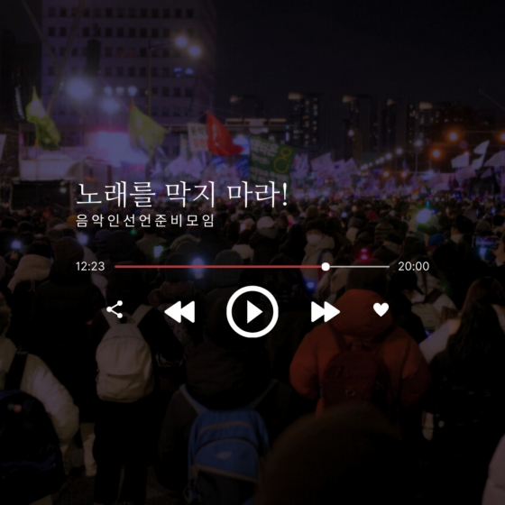 또한 "예술은 시민의 권리이며, 행정은 이를 보장할 의무가 있다"며 "어떠한 이유로도 시민의 문화향유권과 예술인의 표현의 자유를 제한할 수 없다. 오늘 음악인들은 한 목소리로 외친다. 노래를 막지 마라"고 목소리를 높였다.