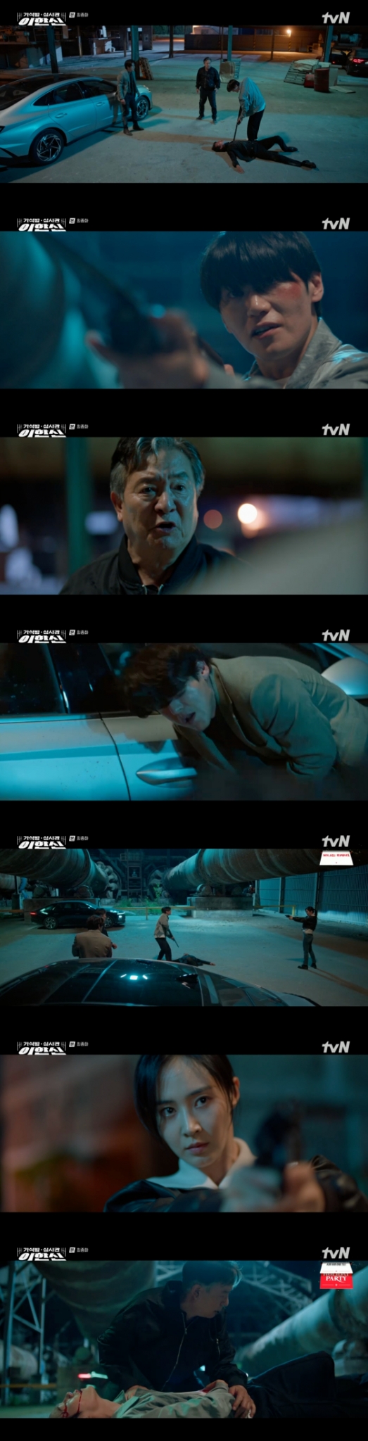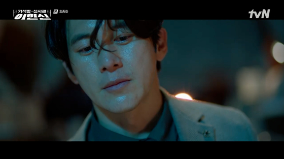 24일 방송된 tvN 월화드라마 '가석방 심사관 이한신' 최종회에서는 지명섭(이학주 분)이 안서윤(권유리 분)의 총에 맞는 모습이 그려졌다.