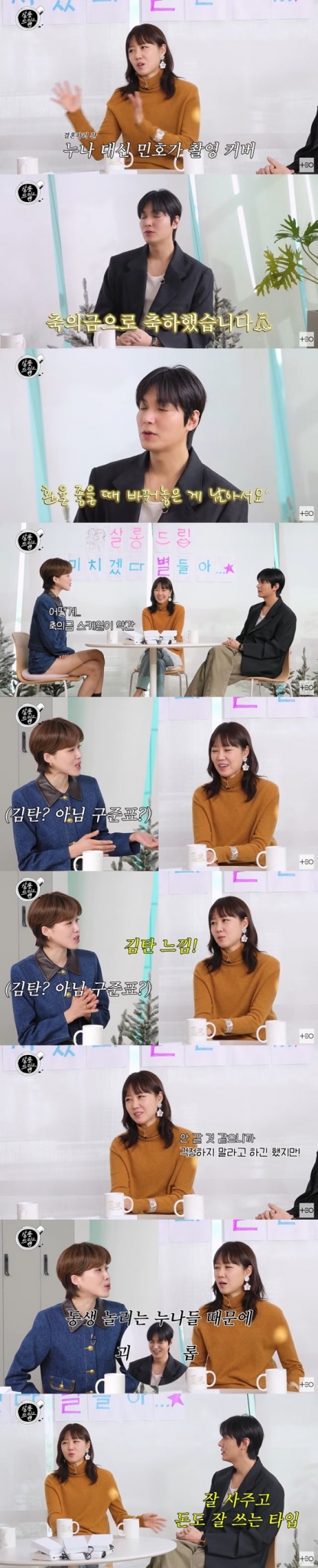 이민호는 "가장 보기 좋았던 건 누나(공효진)가 이제야 마음의 여유를 찾은 듯한 느낌을 받았다. 얘기를 나눠서 아시겠지만 (공효진은) 늘 걱정이 많다. 항상 뭔가를 해야 할 거 같은 책임감을 갖고 평생을 살다가 진정한 짝을 만나 릴렉스 된 거, 그 모습이 가장 좋아 보였다"라고 친동생처럼 말했다.
