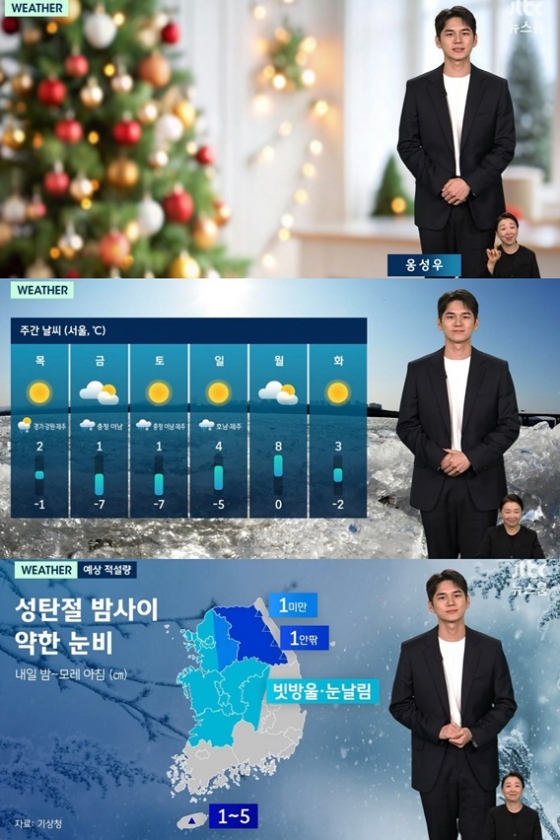 이어 옹성우는 "선물과도 같은 행복과 감동을 전할 애니메이션에서 꼬마 사슴의 목소리 연기로 만나게 되었는데요. 오늘은 제가 날씨를 전해드리겠습니다"라며 크리스마스 이브를 맞아 크리스마스 날씨를 전하는 기상 캐스터로 활약했다.