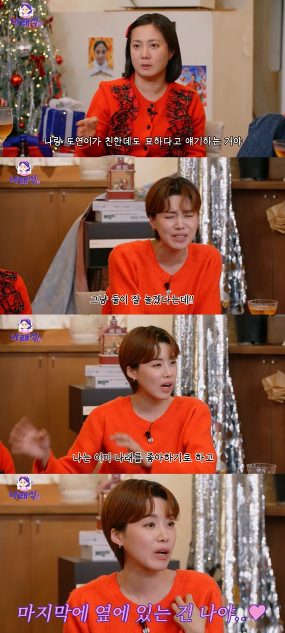 박나래는 "개그는 같이 했는데 어느 순간 도연이랑 나랑 하는 방송 스타일이 달라졌다. 그래서 사람들이 '나랑 도연이가 친한데도 묘하다'고 얘기한다. 동갑인데 빠른 85년생이고, 가장 어렵다는 바로 아래 기수고 다른 것도 많으니까 '방송으로만 친한가?'라고 하는 사람도 많다"고 얘기를 꺼냈다.