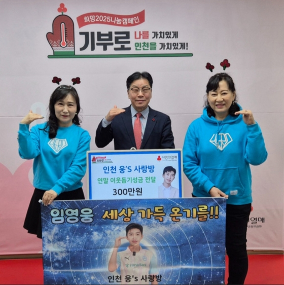 '인천 웅's 사랑방'은 "연말을 맞아 어려운 이웃들을 돕기 위해 회원들과 뜻을 모아 기부하게 됐다"며 "앞으로도 '인천 웅's 사랑방'은 나눔의 기쁨을 널리 알리는 활동을 이어 나가겠다"고 전했다.