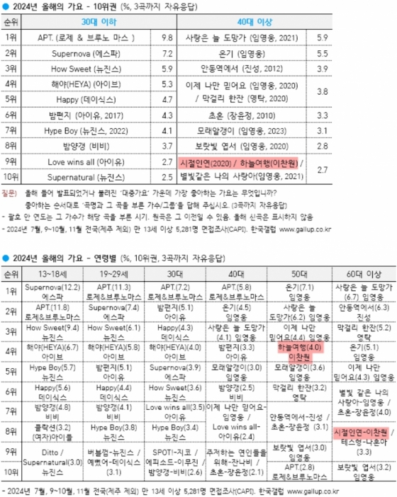 이번 조사는 2024년 7월~8월, 9월~10월, 11월 세 차례에 걸쳐 전국(제주 제외) 만 13세 이상 5281명을 대상으로 면접 조사를 한 결과를 분석해 세대별로 작성됐다.