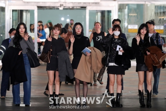 걸그룹 르세라핌(김채원, 사쿠라, 허윤진, 카즈하, 홍은채)가 태국 방콕에서 열리는 '제 9회 아시아 아티스트 어워즈'(The 9th Asia Artist Awards, 이하 'AAA 2024')' 참석을 위해 26일 오후 수완나품 공항을 통해 입국하고 있다.