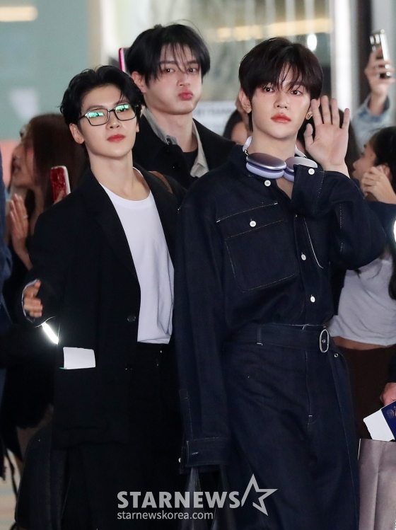 그룹 제로베이스원 석매튜, 김지웅, 장하오가 태국 방콕에서 열리는 '제 9회 아시아 아티스트 어워즈'(The 9th Asia Artist Awards, 이하 'AAA 2024')' 참석을 위해 26일 오후 수완나품 공항을 통해 입국하고 있다.