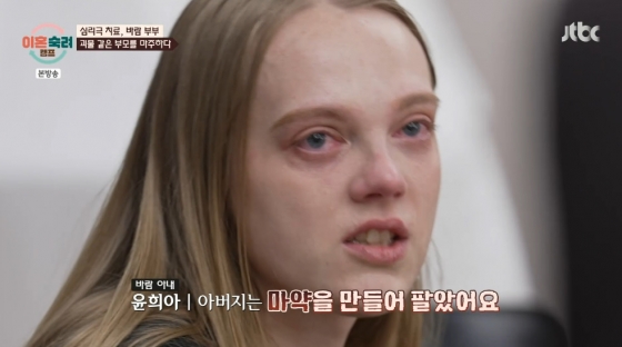 결국 입을 연 아내는 "내 부모는 완전 괴물이었다. 이 세상에서 우리 부모 같은 사람 못 봤다. 정말 너무하다"라며 "아빠는 마약을 만들어 팔았다. 맨날 싸워서 우리 집 물건 다 던지고 나한테 학대도 엄청 많이 했다. 경찰이 집에 거의 매일 왔다. 그래서 나는 아빠 때문에 2년 동안 고아원에서 자랐다. 아빠가 완전 미웠다. 그래서 엄마한테 '이혼해'라고 얘기했다. 근데 엄마는 '나중에 이해할테지만 아빠가 더 중요해. 아빠는 엄마가 필요해'라고 했다. 근데 나도 엄마가 필요했다. '그냥 새로운 부모님이 있으면 좋겠다. 당신들은 부모가 아니다'라는 말을 했었다"라고 밝혔다.