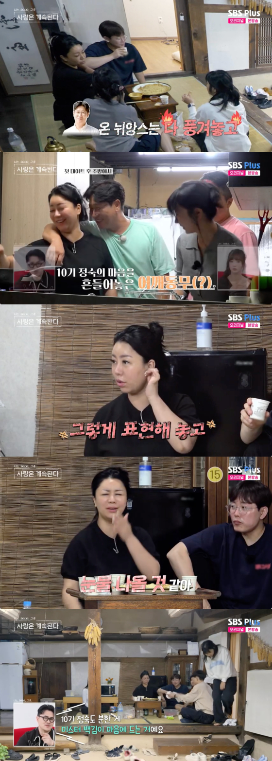 아무것도 모르던 미스터 백김은 10기 정숙이 우는 모습을 보고 "식겁했다. 왜 또 울고 그러냐. 원래 이런 사람들이 더 여리다. 오늘 여자여자하다"고 너스레를 떨었지만 분위기는 풀리지 않았다.