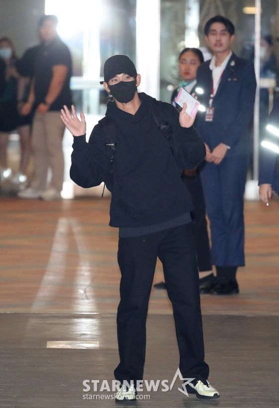 배우 김수현이 태국 방콕에서 열리는 '제 9회 아시아 아티스트 어워즈'(The 9th Asia Artist Awards, 이하 'AAA 2024')' 참석을 위해 27일 수완나품 공항을 통해 입국하고 있다.