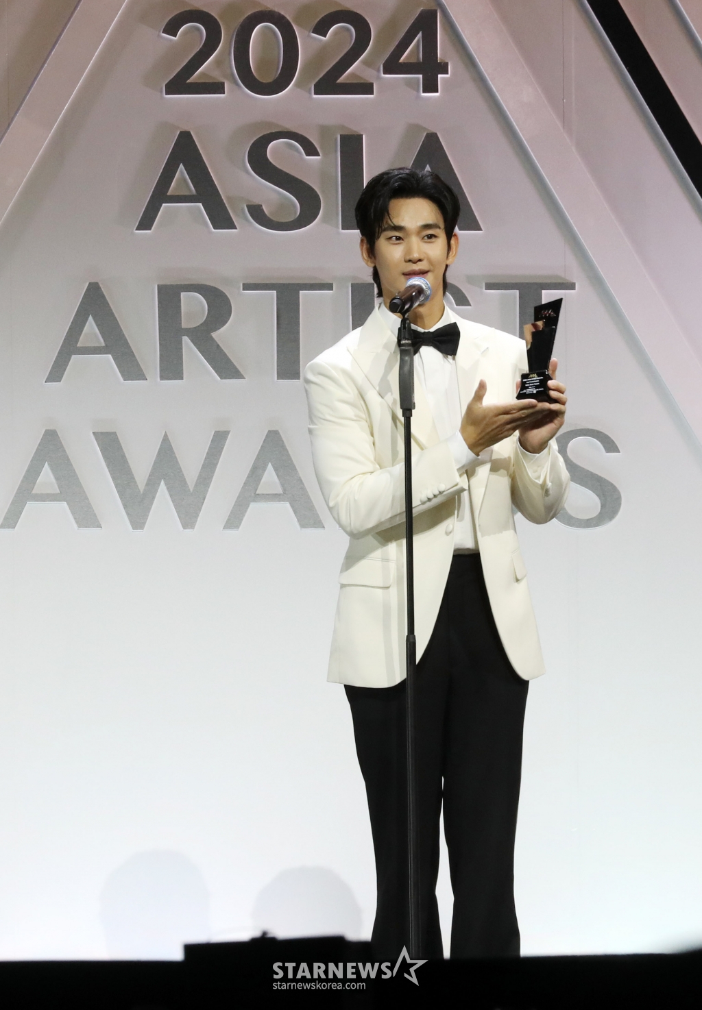 배우 김수현이 'AAA 2024'에서 핫트렌드상을 수상했다.