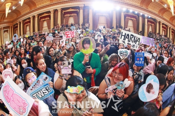 27일 오후 태국 방콕 임팩트 챌린저 홀 1-2(IMPACT Challenger Hall 1-2)에서 진행된 '제9회 아시아 아티스트 어워즈'(The 9th Asia Artist Awards, 이하 'AAA 2024') 레드카펫 행사에서 세계 각국의 팬들이 아티스트들을 응원하고 있다.