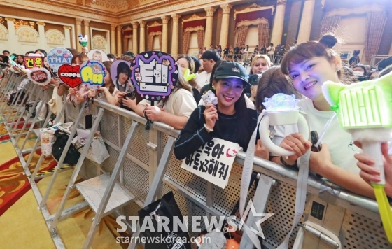 27일 오후 태국 방콕 임팩트 챌린저 홀 1-2(IMPACT Challenger Hall 1-2)에서 진행된 '제9회 아시아 아티스트 어워즈'(The 9th Asia Artist Awards, 이하 'AAA 2024') 레드카펫 행사에서 세계 각국의 팬들이 아티스트들을 응원하고 있다.