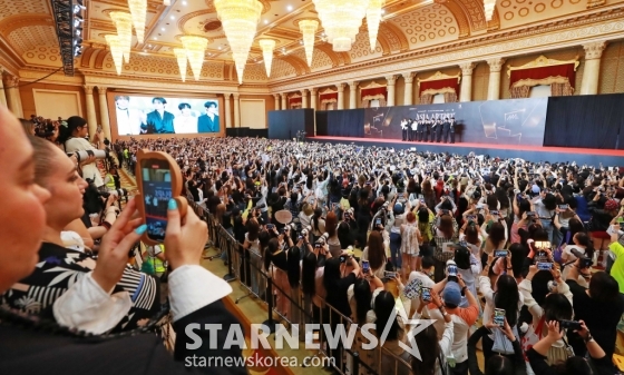 27일 오후 태국 방콕 임팩트 챌린저 홀 1-2(IMPACT Challenger Hall 1-2)에서 진행된 '제9회 아시아 아티스트 어워즈'(The 9th Asia Artist Awards, 이하 'AAA 2024') 레드카펫 행사에 세계 각국의 팬들과 취재진이 모여 있다.