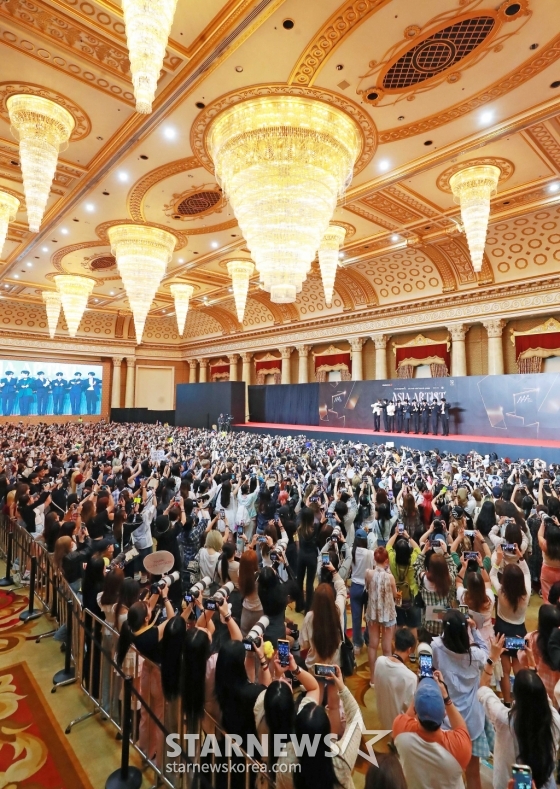 27일 오후 태국 방콕 임팩트 챌린저 홀 1-2(IMPACT Challenger Hall 1-2)에서 진행된 '제9회 아시아 아티스트 어워즈'(The 9th Asia Artist Awards, 이하 'AAA 2024') 레드카펫 행사에 세계 각국의 팬들과 취재진이 모여 있다.