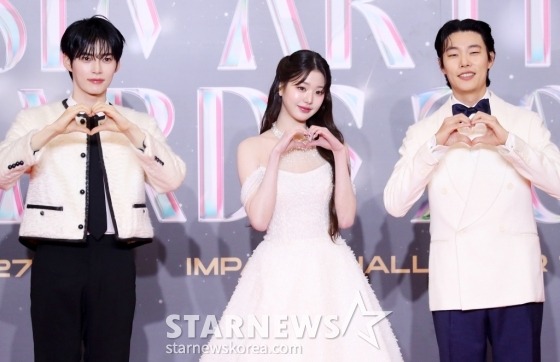 제로베이스원 성한빈, 아이브 장원영, 배우 류준열이 27일 오후 태국 방콕 임팩트 챌린저 홀 1-2(IMPACT Challenger Hall 1-2)에서 진행된 '제 9회 아시아 아티스트 어워즈'(The 9th Asia Artist Awards, 이하 'AAA 2024')' 레드카펫 행사에 참석해 포즈를 취하고 있다. 2024.12.27