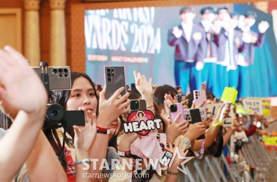 27일 오후 태국 방콕 임팩트 챌린저 홀 1-2(IMPACT Challenger Hall 1-2)에서 진행된 '제9회 아시아 아티스트 어워즈'(The 9th Asia Artist Awards, 이하 'AAA 2024') 레드카펫 행사에서 세계 각국의 팬들이 아티스트들을 응원하고 있다.