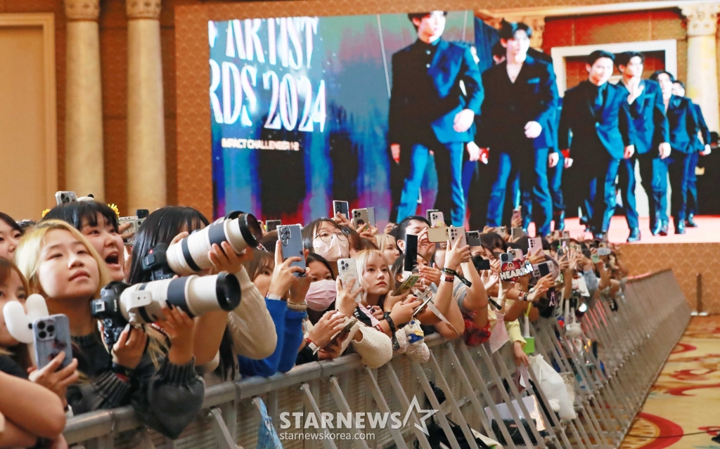27일 오후 태국 방콕 임팩트 챌린저 홀 1-2(IMPACT Challenger Hall 1-2)에서 진행된 '제9회 아시아 아티스트 어워즈'(The 9th Asia Artist Awards, 이하 'AAA 2024') 레드카펫 행사에서 세계 각국의 팬들이 아티스트들을 응원하고 있다.