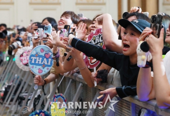 27일 오후 태국 방콕 임팩트 챌린저 홀 1-2(IMPACT Challenger Hall 1-2)에서 진행된 '제9회 아시아 아티스트 어워즈'(The 9th Asia Artist Awards, 이하 'AAA 2024') 레드카펫 행사에서 세계 각국의 팬들이 아티스트들을 응원하고 있다.