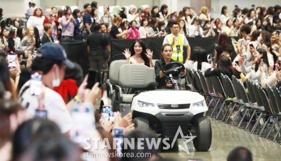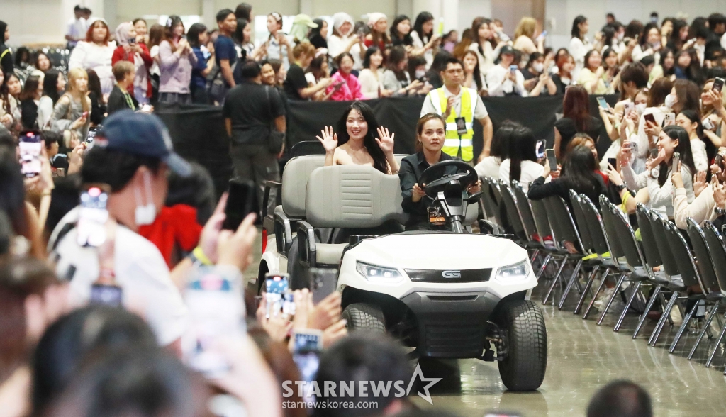 배우 김혜윤이 27일 오후 태국 방콕 임팩트 챌린저 홀 1-2(IMPACT Challenger Hall 1-2)에서 진행된 '제9회 아시아 아티스트 어워즈'(The 9th Asia Artist Awards, 이하 'AAA 2024') 레드카펫 행사에서 버기카를 타고 입장하고 있다.
