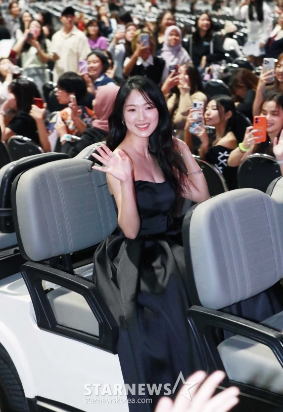 배우 김혜윤이 27일 오후 태국 방콕 임팩트 챌린저 홀 1-2(IMPACT Challenger Hall 1-2)에서 진행된 '제9회 아시아 아티스트 어워즈'(The 9th Asia Artist Awards, 이하 'AAA 2024') 레드카펫 행사에서 버기카를 타고 입장하고 있다.