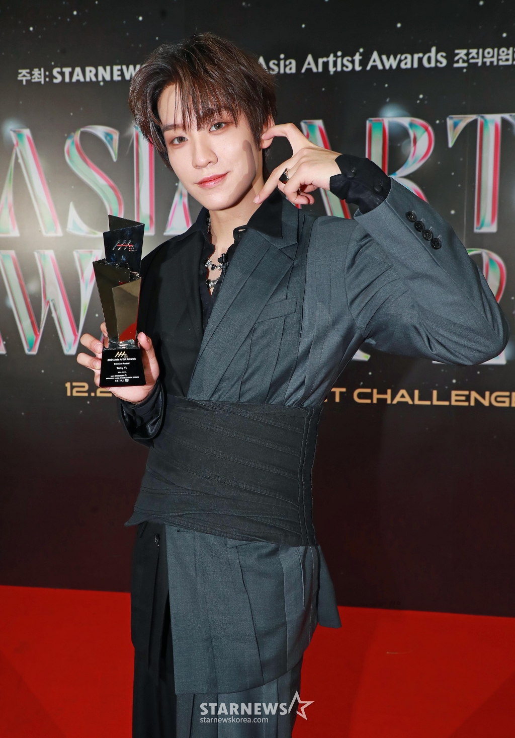 태국 가수 토니 유가 27일 오후 태국 방콕 임팩트 챌린저 홀 1-2(IMPACT Challenger Hall 1-2)에서 진행된 '제9회 아시아 아티스트 어워즈'(The 9th Asia Artist Awards, 이하 'AAA 2024')에서 AAA 이모티브상을 수상한 뒤 포즈를 취하고 있다.