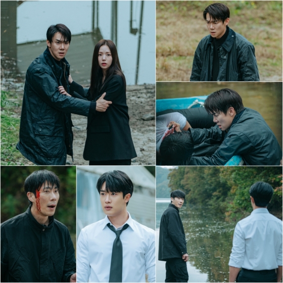 사언은 희주를 인질로 삼은 도재와 납치범의 연락을 받고 아내를 구하기 위해 곧장 낚시터로 향한다. 하지만 사언은 이내 눈앞에 닥친 믿을 수 없는 광경에 충격을 받는데. 스틸에는 피범벅인 채 정신을 잃은 도재의 모습이 포착돼 예사롭지 않은 일이 벌어졌음을 직감케 한다.