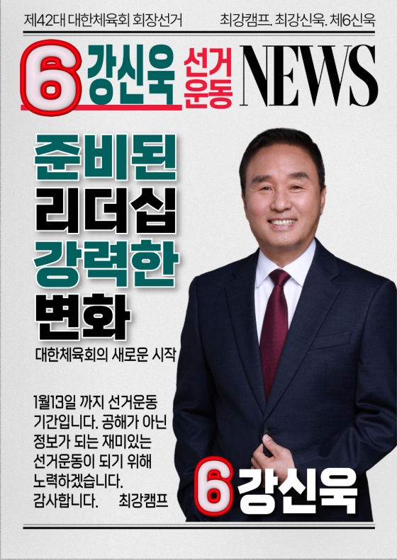 강 후보는 이날 행사에서 지방체육회의 정상화 등의 내용을 담은 국민체육진흥법 개정 등 주요 핵심 공약도 제시했다.