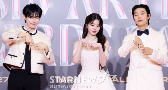 제로베이스원 성한빈, 아이브 장원영, 배우 류준열이 27일 오후 태국 방콕 임팩트 챌린저 홀 1-2(IMPACT Challenger Hall 1-2)에서 진행된 '제 9회 아시아 아티스트 어워즈'(The 9th Asia Artist Awards, 이하 'AAA 2024')' 레드카펫 행사에 참석해 포즈를 취하고 있다. 2024.12.27