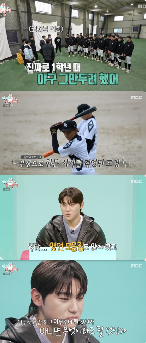 당시 야구를 그만두려 했던 이유를 묻는 양세형의 질문에 김도영은 부상을 겪으며 심적으로 많이 힘들었다고 털어놨다. 하지만 이를 이겨내고 다시 야구를 계속했던 이유로는 '명언 모음집'을 꼽았다.