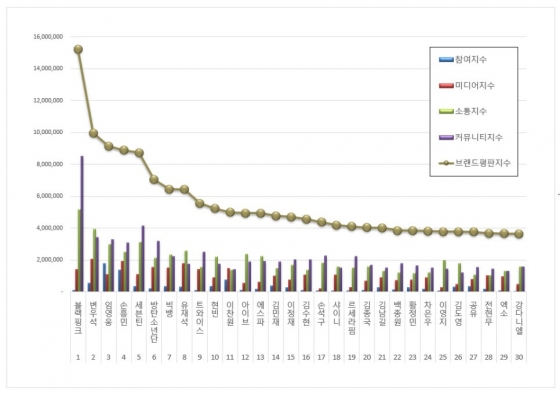 한국기업평판연구소는 2024년 11월 29일부터 2024년 12월 29일까지 측정한 스타 브랜드 빅데이터 328,502,574개를 소비자 행동분석을 통해 스타 브랜드에 대한 참여지수, 미디어지수, 소통지수, 커뮤니티지수를 측정했다. 지난 11월 스타 브랜드 빅데이터 319,855,238개와 비교하면 2.70% 증가했다.