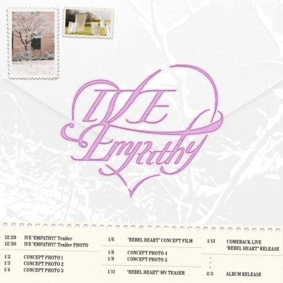 공개된 이미지는 편지 봉투 모양을 연상시킨다. 사진으로 된 우표와 편지지에 쓰인 스케줄이 전체적으로 따뜻하면서 서사 있는 분위기를 자아내 이번 아이브 앨범에 대한 궁금증을 불러일으킨다. 스케줄 포스터에 따르면 아이브는 29일 '엠파시!(EMPATHY!)' 트레일러 영상과 30일 트레일러 포토를 공개해 본격적으로 컴백 열기를 달군다.