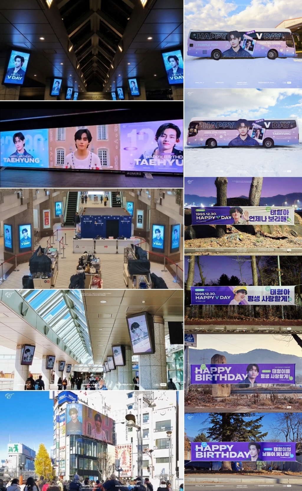 일본의 8개 도시의 대형 광고스크린에도 뷔의 생일축하 영상이 1주일에서 2주일 동안 송출한다. 도쿄의 신주쿠비전, 요코하마의 랜드마크 타워, 오사카의 톤보리 스테이션, 나고야의 스크램블X비전, 삿포르의 AUMIRU, 에히메의 스트리트 버전, 센다이의 라비전 등 일본 전역에 뷔의 생일 축하영상이 송출된다.