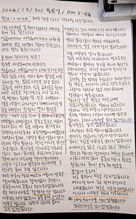서정희는 30일 자신의 계정에 "제주항공 참사 기도하는 시간입니다"라는 제목으로 작성한 기도문을 게재했다.