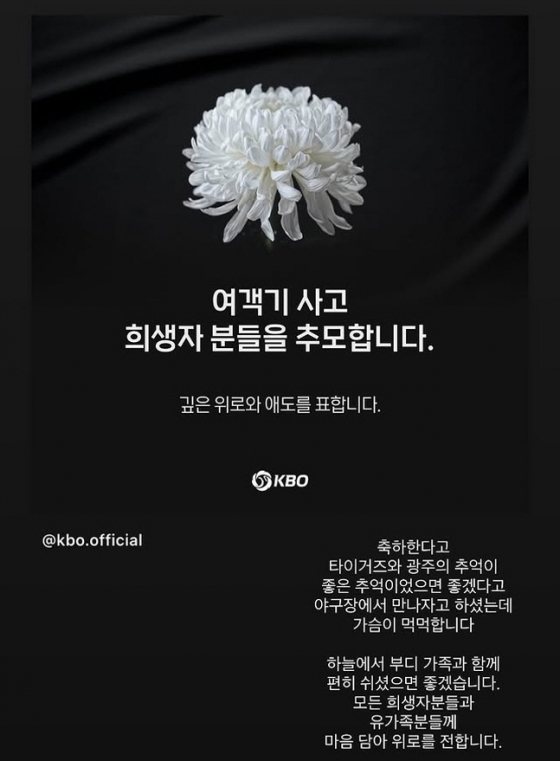 KBO도 SNS를 통해 "여객기 사고 희생자분들을 추모합니다. 깊은 위로와 애도를 표합니다"라는 글을 게시했다.