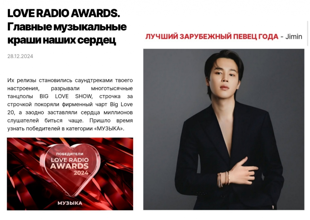 러시아 매체 'RBC'는 지난 12월 23일자 기사에서 "현지 최고의 인기곡 순위는 K팝 음악으로 대표되며, 주로 방탄소년단의 보컬 지민의 곡"이라며 지민의 'Who'(후)를 꼽았다.