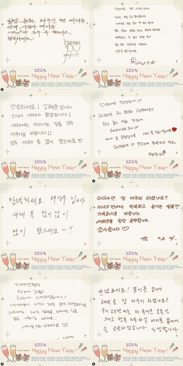 아티스트컴퍼니 측은 소속 배우들이 차례로 새해 인사 문구를 적은 사진을 공개했다.