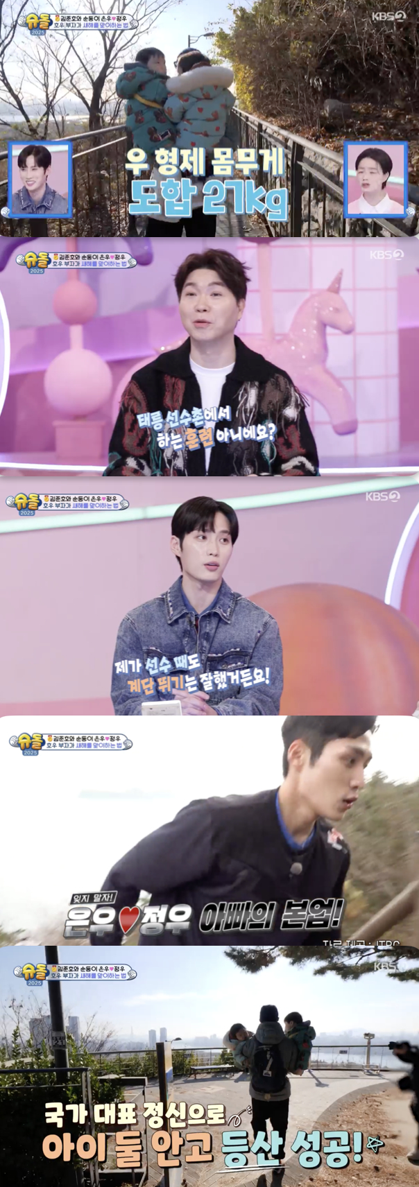 1일 방송된 KBS 2TV '슈퍼맨이 돌아왔다' 555회에서는는 '푸른 뱀의 해엔 행복 가득, 사랑 가득' 편으로 2025년 푸른 뱀의 해를 맞아 김준호, 은우, 정우 삼부자가 응봉산에 생애 첫 등반을 도전한 모습이 그려졌다.