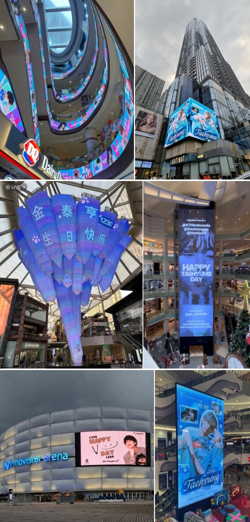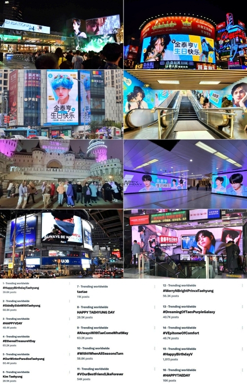 태국 방콕의 시암 파라곤 대형 디지털 광고 스크린 앞에는 뷔의 생일 축하 영상을 보러온 수많은 팬이 몰려 축제의 열기를 더했다. 말레이시아 쿠알라룸푸르의 복합쇼핑몰 파렌하이트 88의 3개의 대형 광고판에 뷔의 생일 축하 영상을 보러온 수많은 팬이 몰려 축제의 열기를 더했다.