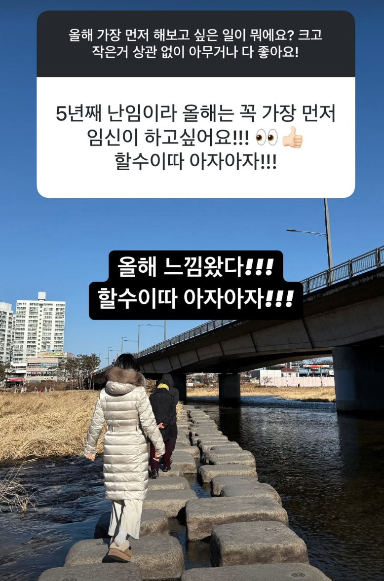 초아는 다른 팬으로부터 "5년째 난임이라 올해는 꼭 가장 먼저 임신이 하고 싶어요! 할수있다 아자아자!"라는 메시지를 받고 "올해 느낌 왔다!!! 할수이따 아자아자!!!"라고 응원했다.
